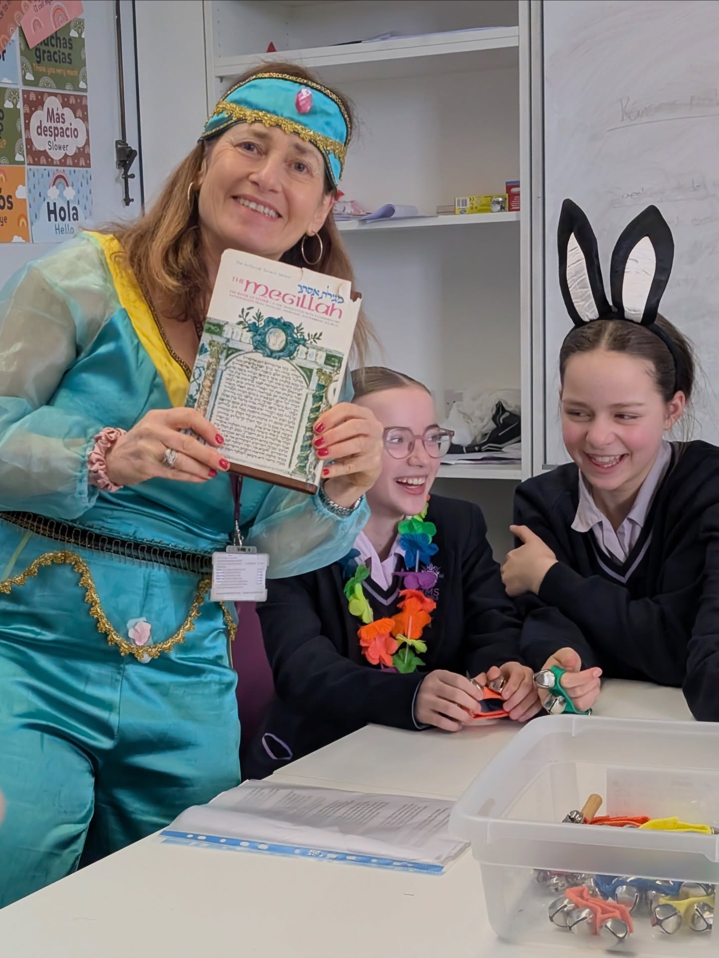 Students heard the story of Purim